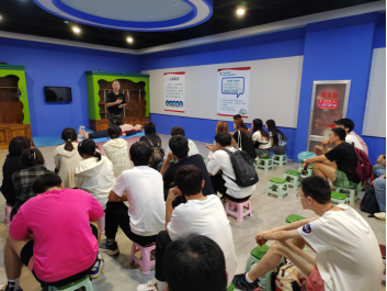 在到达科教体验基地后,由工作人员带领首先开展心肺复苏实践教学,专业人员从评估环境和患者状态到完成安全施救进行全过程的细致讲授,过程中邀请学生分组上台展示学习成果。